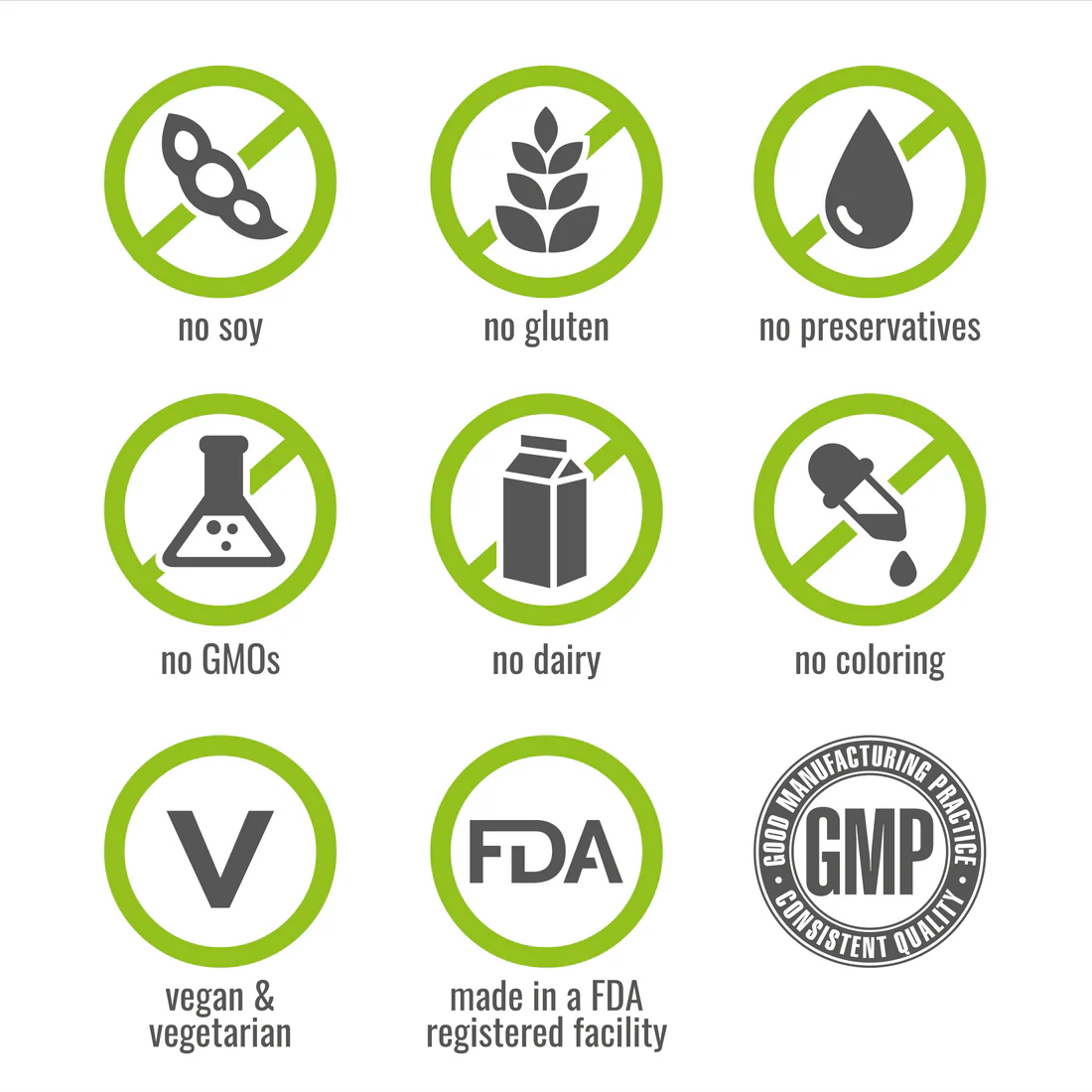 • CLEAN LABEL: Non-GMO & Vegan-friendly, with no animal-derived ingredients, no preservatives, and no gluten or soy.