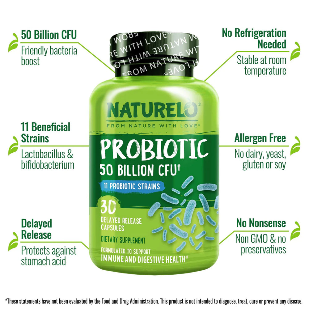 • STRONG SUPPORT: Includes 11 researched probiotic strains with 50 Billion active cultures to help repopulate your gut with friendly bacteria.*