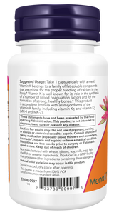 Vitamin K belongs to a family of fat-soluble compounds that are critical for the proper handling of calcium in the body.* Vitamin K is well known for its role in the synthesis of a number of blood coagulation factors and for the formation of strong, healthy bones.* This product is a complete formula with all major forms of the vitamin K family, including vitamin K1 and vitamin K2 (MK-4 and MK-7).