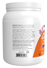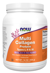 As the most abundant protein in mammals, collagen makes up about 30% of the body's protein. NOW® Multi Collagen features collagen from three sources: beef, chicken and fish. This combination product offers naturally occurring types I and III collagen from beef, type II collagen from chicken bone broth and type I collagen from fish. The bovine collagen used in this product is from BSE-free and hormone-free cattle.