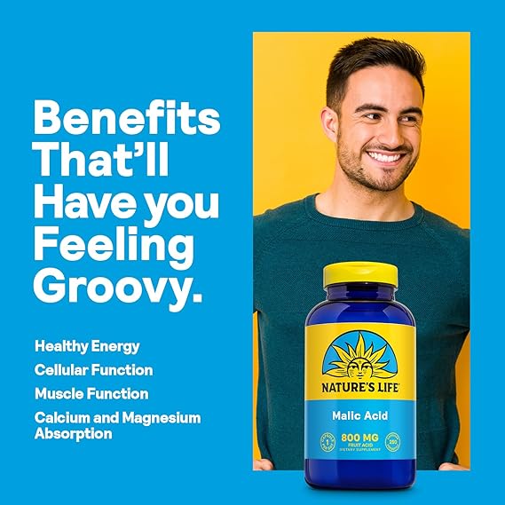 - Chelating Agent: Nature's Life Malic Acid capsules supply 800 mg of this food-grade fruit acid that naturally binds to certain minerals such as calcium and magnesium to enhance absorption and utilization by the body.