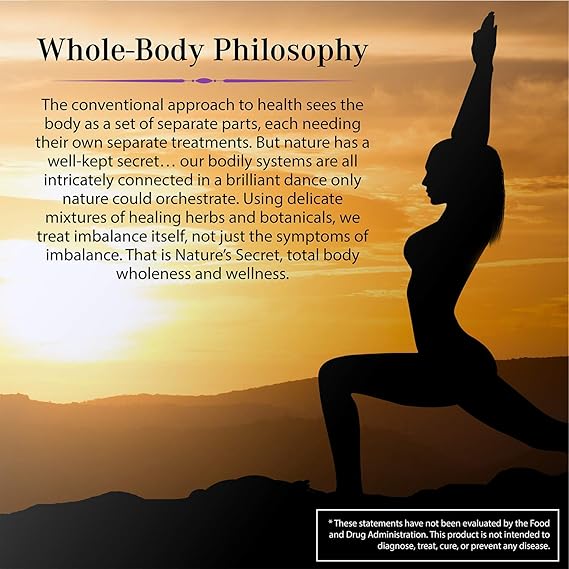- Total Body Wellness: At Nature's Secret we believe that total body wellness is the key to overall health. We develop our life-changing products using this whole body philosophy. Using delicate blends of healing herbs and botanicals, we treat the imbalance itself, not just the symptoms of the imbalance.