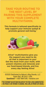 It’s good to be prepared in all aspects of life, from your career to your home life and especially when it comes to your immune health.* While you may take a daily multivitamin for general wellness, you might want extra immune support during the winter season, if you travel often, have kids in school, or work in a busy office or high-traffic area.* Everyday Immune Health is formulated with Vitamins A, C, and D3, plus zinc and Echinacea purpurea for daily immune support and keep you feeling like your best self.* These are meant to be taken alongside your daily Alive! multivitamin.
