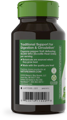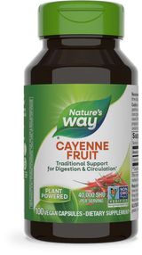 Cayenne is more than a go-to ingredient for your spiciest dishes. Cayenne has been traditionally used for a variety of purposes. These spicy red peppers contain capsaicin, which makes them taste “hot.” Nature’s Way Cayenne Fruit was inspired by these traditional uses and is used to aid digestion and support circulation.*