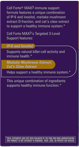 Cell Forté MAX3 provides a unique spectrum of wholesome phytonutrients with IP-6 & inositol, maitake mushroom extract, and cat’s claw extract to help support your immune system.* IP-6 & inositol also support natural killer-cell activity.*
