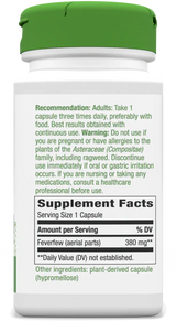 Nature's Way Feverfew Herb 100 Vgn Cp is backordered and will ship as soon as it is back in stock.