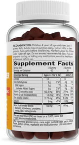 The immune system is your body’s first line of defense. Support it with this power-packed trio of high potency vitamins C and D‡ plus zinc, a key mineral for immune health.* These delicious strawberry-orange flavored gummies are made with over 100% Daily Value of vitamins C and D‡, and an excellent source of zinc . Vitamin C provides powerful antioxidant action.* Just two gummies a day helps keep your immune system at the top of its game for wherever life takes you.* (Ŧ Each 2-gummy adult serving provides high potency vitamins C and D; the child 1-gummy serving provides an excellent source of vitamins C and D.)