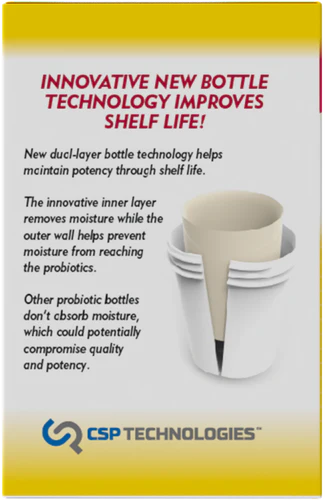The dual-layered bottle helps keep probiotics protected and potent through the date of expiration.