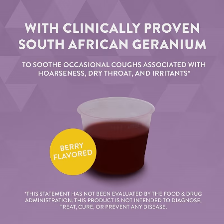 South African Geranium root extract soothes occasional coughs associated with hoarseness, dry throat, and irritants, and reduces the duration and severity of minor nasal, throat, and chest irritations.