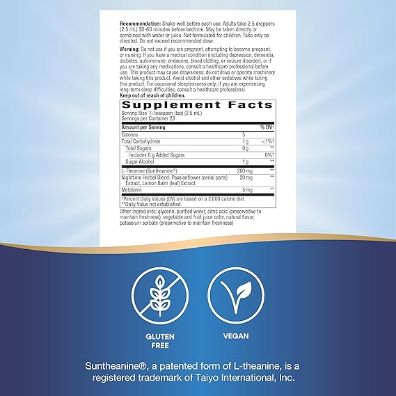 L-theanine helps promote relaxation.* Drops also include a nighttime herbal blend of passionflower and lemon balm.