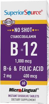 Superior Source No Shot Cynocobalamin B-12 1,000 mcg B-6 & Folic Acid 400 mcg - 100 Microlingual Tablets is backordered and will ship as soon as it is back in stock.
