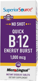 Superior Source No Shot Quick B-12 Energy Boost 1,000 mcg - 100 Microlingual Tablets is backordered and will ship as soon as it is back in stock.