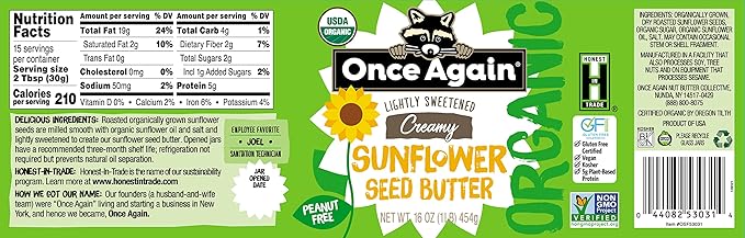 Once Again Organic Creamy Peanut Butter is made by roasting and grinding dry-roasted peanuts until impossibly creamy. In Once Again Peanut Butter, organic peanuts are the only ingredient, resulting in a great-tasting product that's salt free, unsweetened, gluten free, vegan, kosher, and rich and creamy. Stock Once Again in the peanut butter and jelly aisle or in the organic section.