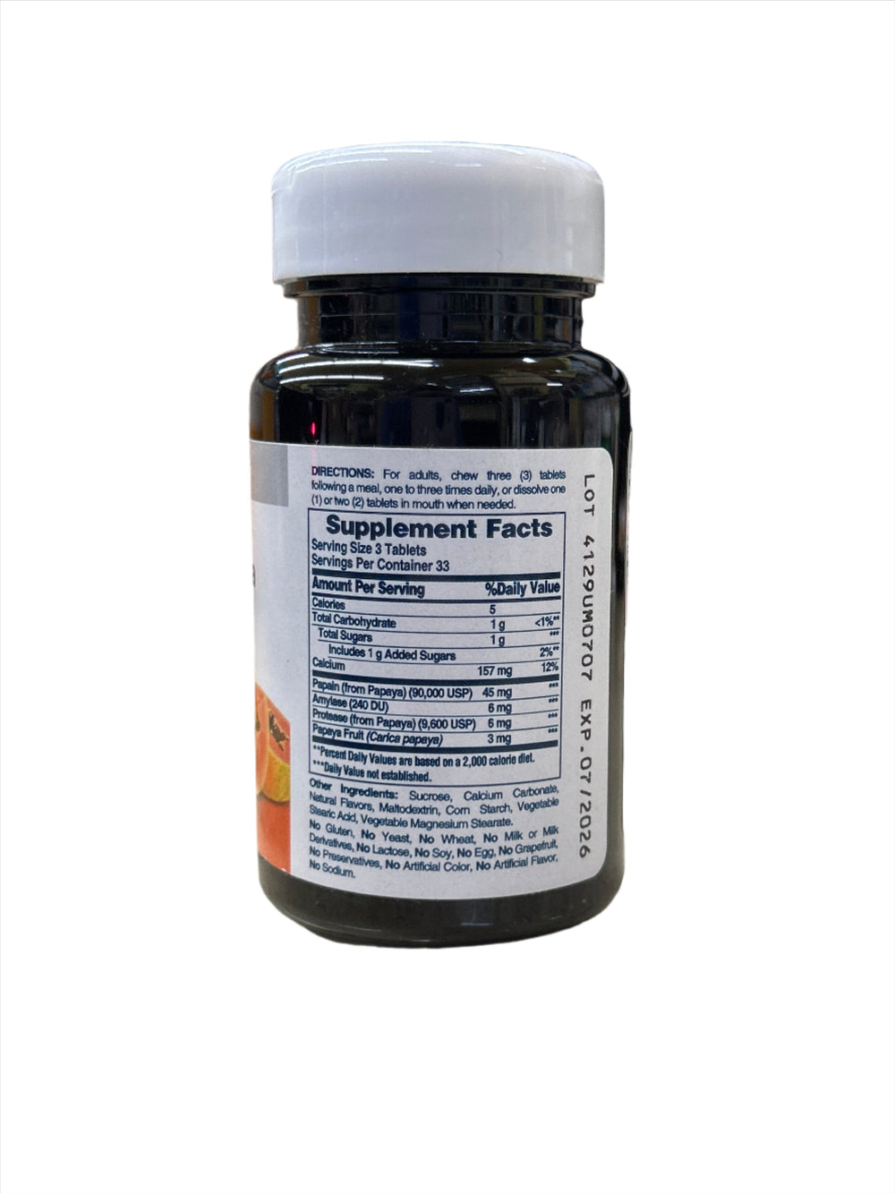 A Naturally-Sourced Digestive Aid; Contains freshly ripened papaya fruit with papain, amylase & protease enzymes, which aid in the digestion of proteins and carbohydrates
