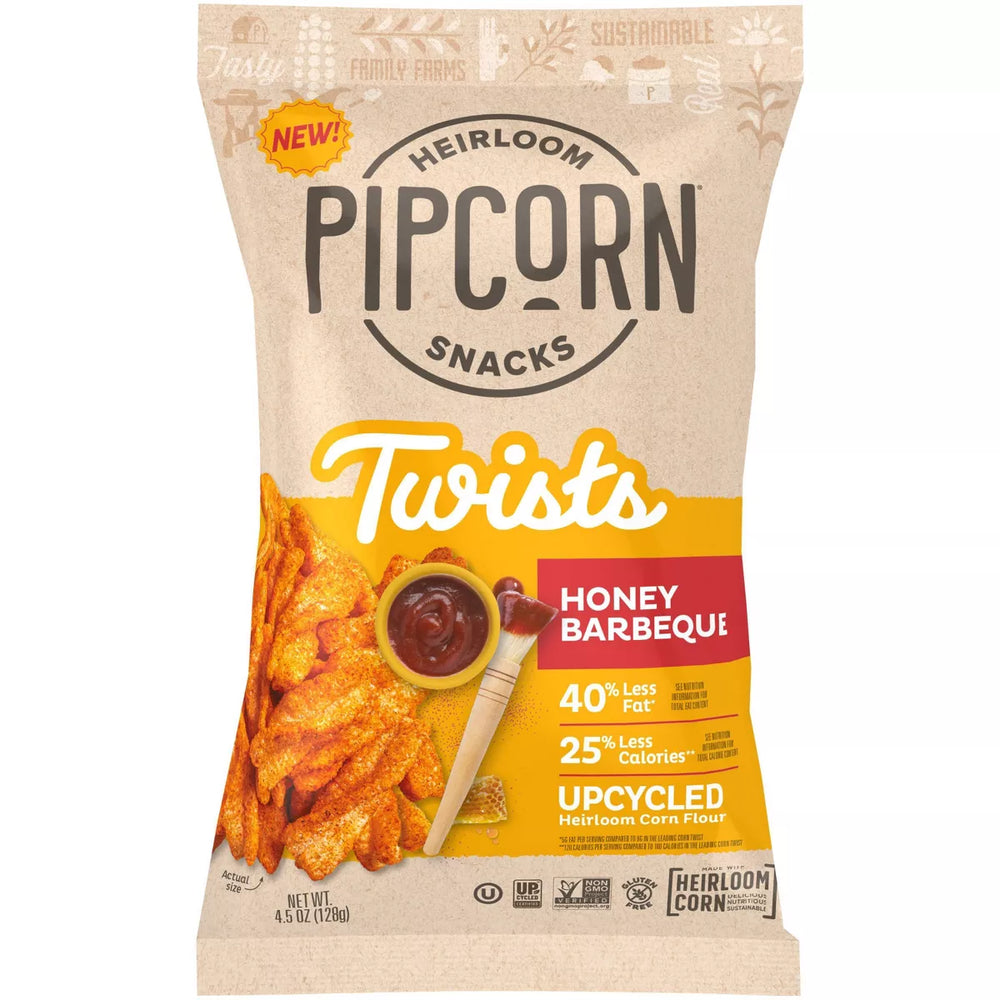 We’re bringing a new twist to the snack game! The irresistible Pipcorn crunch meets the classic flavor, Honey Barbeque, for a uniquely satisfying, omg-I-finished-the-bag snacking experience. Our all-new Twists are made with sustainability in mind by using upcycled Heirloom corn flour to create a flavor-packed shape that’s light, airy, and oh-so-crispy! Made with real, non-GMO ingredients you can feel good about.