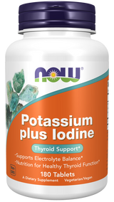 Potassium Iodide (KI) is a compound that contains Iodine, a nutrient necessary for normal thyroid function.* Iodine, in the form of Iodide, is an integral part of the thyroid secretions that regulate cellular metabolism and energy production.* NOW® Potassium plus Iodine also supplies Potassium, a mineral that is essential for the maintenance of healthy water and electrolyte balance, as well as whole body pH.*