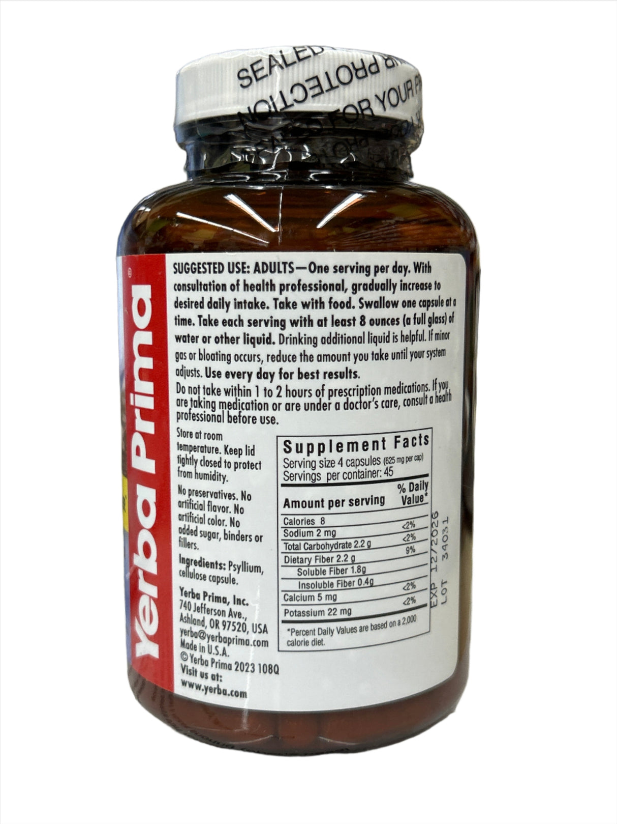 Psyllium Husk Gentle Soothing Fiber 180 Capsules