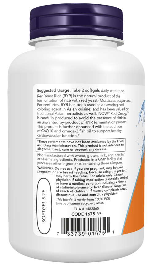 Red Yeast Rice (RYR) is the natural product of the fermentation of rice with red yeast (Monascus purpureus). For centuries, RYR has been used as a flavoring and coloring agent in Asian cuisine, and has been valued by traditional Asian herbalists as well. NOW® Red Omega™ is carefully produced to avoid the presence of citrinin, an unwanted by-product of RYR fermentation process. This product is further enhanced with the addition of CoQ10 and omega-3 fish oil to support healthy cardiovascular function.*