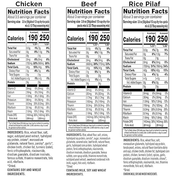- 4 boxes Chicken, 4 boxes Beef, 2 boxes Pilaf