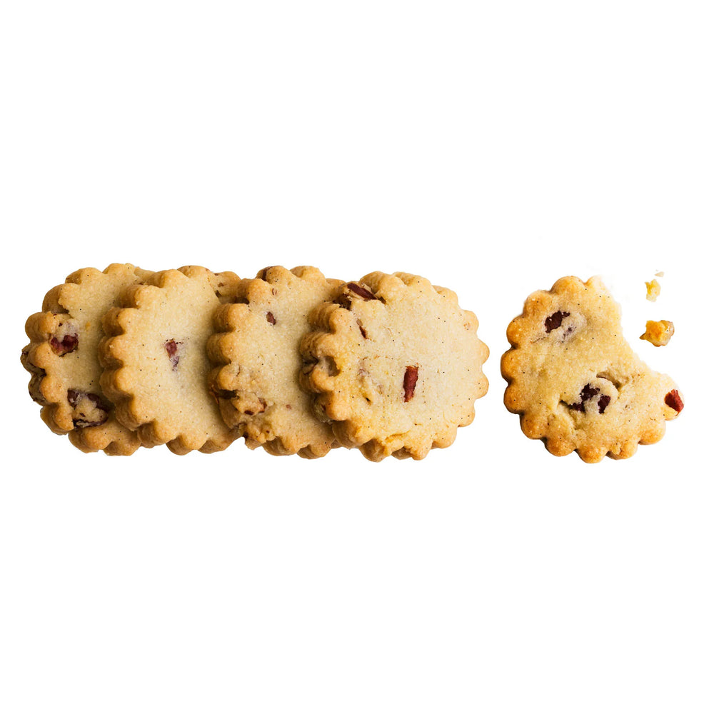 Unbleached Enriched Wheat Flour (wheat flour, niacin, reduced iron, thiamine mononitrate, riboflavin, folic acid, enzyme), Butter (cream), Cane Sugar, Pecans, Vanilla Extract (water, alcohol, vanilla bean extract), Sea Salt