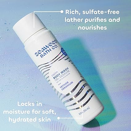 - Contains: 1 - 12oz bottle of Seaweed Bath Co. Calm Vetiver Geranium Scented Body Wash. Previously calm scent. For a limited time, you can receive either bottle while we update our packaging. New look, same great product.