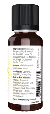 Ingredients: Orange Oil, Bergamot Oil, Grapefruit Oil, Lime Oil, Lemon Oil, Cinnamon Bark Oil, Nutmeg Oil, Ginger Oil, Natural Vanilla Extract.