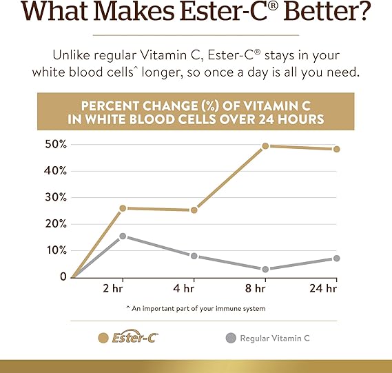 - Benefits: The vitamin C metabolites in Ester-C have a positive impact on the retention of vitamin C in the body's cells, providing additional benefits.