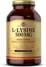 - Non-GMO and gluten-free; Solgar L-Lysine vegetable capsules are suitable for vegans and vegetarians; free of: gluten, wheat, dairy, soy, yeast, sugar, sodium, artificial flavor, sweetener and color