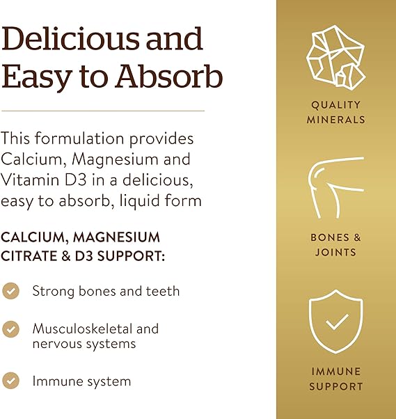 Solgar Liquid Calcium Magnesium Citrate with Vitamin D3, Natural Strawberry, 16 Oz