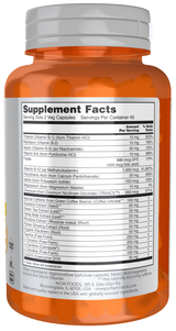 NOW® Sports Energy Extreme is formulated to supply the nutrients you need to promote sustained energy production and mental alertness.* With a full complement of B vitamins and other cofactors such as chromium, magnesium malate and carnitine, NOW® Sports Energy Extreme delivers what your cells need most to drive energy production.* This product also has tyrosine and iodine to support optimal thyroid function, plus a blend of herbal adaptogens to help your body cope with intense activity.* Naturally occurring caffeine helps you stay alert and supports thermogenesis.*