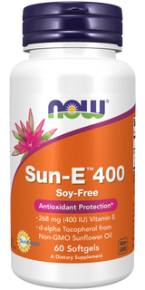 NOW® Sun-E™ 400 is a soy-free, vitamin E derived from Identity Preserved (IP), non-GMO sunflower seed oil. Vitamin E is a major fat-soluble antioxidant that is particularly important for maintaining cellular health by neutralizing free radicals formed through normal metabolic processes, as well as through environmental exposures.* In addition to its antioxidant activities, vitamin E is also vital for normal immune function and for maintenance of a healthy vascular system.*
