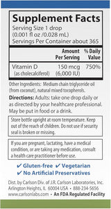 - 6,000 IU (150 mcg) of vitamin D3 concentrated in a single liquid drop