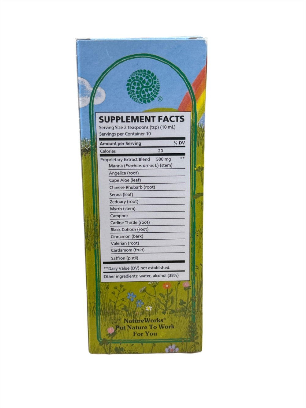 Contains black cohosh root, cinnamon, senna, cardamom and more.
