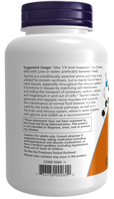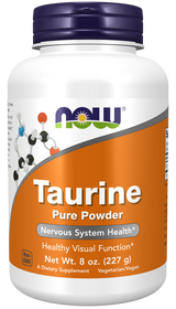 Taurine is a conditionally essential amino acid that is not utilized for protein synthesis, but is mainly found free in most tissues, especially throughout the nervous system.* It functions in tissues by stabilizing cell membranes and aiding the transport of potassium, sodium, calcium and magnesium in and out of cells.* Taurine helps to generate and regulate nerve impulses and supports the maintenance of normal fluid balance; it is also used by the body in visual pathways, as well as in the brain and nervous system, where it works together with glycine and GABA as a neurotransmitter.*