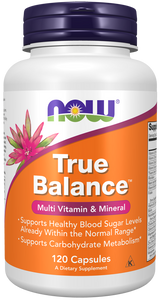 True Balance™ is a multi-vitamin, multi-mineral supplement that’s specially formulated to support healthy carbohydrate metabolism and healthy blood sugar levels already within the normal range.* This formula includes a high dose of biotin, a B-vitamin that plays an important role in supporting healthy insulin production through its ability to support healthy pancreatic function.* We also include thiamin, chromium, vanadium and the herb Gymnema sylvestre for their supporting roles in healthy glucose metabolism.*