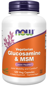 NOW® Vegetarian Glucosamine & MSM combines two well-known joint support ingredients in a vegetarian/vegan friendly formula that does not include shellfish-derived Glucosamine.* Glucosamine is an essential building block for the formation of glycosaminoglycans (GAGs) and proteoglycans, the main components of cartilage tissue.* These compounds attract water to form a joint cushion, providing lubrication and shock absorption.* MSM (Methylsulfonylmethane) is an organic form of sulfur, a mineral necessary for the production of GAGs and proteoglycans.*