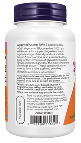 NOW® Vegetarian Glucosamine ‘1000’ is a well-known joint support ingredient that is vegetarian/vegan friendly and not shellfish-derived.* Glucosamine is an essential building block for the formation of glycosaminoglycans (GAGs) and proteoglycans, the main components of cartilage tissue.* These compounds attract water to form a joint cushion, providing lubrication and shock absorption.*