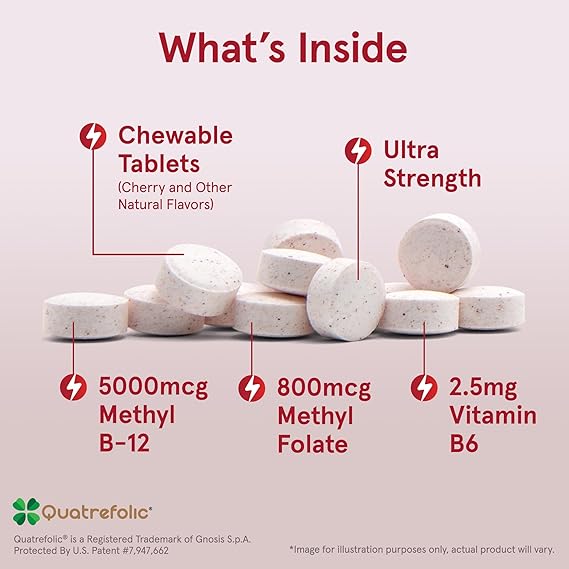 - Cellular Energy Metabolism and Cardiovascular support supplement*: Contains one 60 count bottle of Jarrow Formulas Ultra Strength Methyl B-12 5000mcg & Methyl Folate 800mcg Chewable Tablets for a 60-day supply.