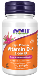 NOW® Vitamin D-3 softgels supply this key vitamin in a highly absorbable liquid softgel form. Vitamin D is normally obtained from the diet or produced by the skin from the ultraviolet energy of the sun. However, it is not abundant in food. As more people avoid sun exposure, vitamin D supplementation becomes even more necessary to ensure that your body receives an adequate supply.