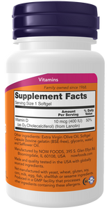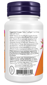 NOW® Vitamin D-3 softgels supply this key vitamin in a highly absorbable liquid softgel form. Vitamin D is normally obtained from the diet or produced by the skin from the ultraviolet energy of the sun. However, it is not abundant in food. As more people avoid sun exposure, Vitamin D supplementation becomes even more necessary to ensure that your body receives an adequate supply.