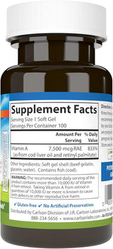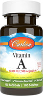 - 25,000 IU (7,500 mcg RAE) of vitamin A per softgel