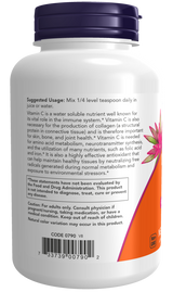 Vitamin C is a water soluble nutrient well known for its vital role in the immune system.* Vitamin C is also necessary for the production of collagen (a structural protein in connective tissue) and is therefore important for skin, bone, and joint health.* Vitamin C is needed for amino acid metabolism, neurotransmitter synthesis, and the utilization of many nutrients, such as folic acid and iron.* It is also a highly effective antioxidant that can help maintain healthy tissues by neutralizing free radicals generated during normal metabolism and exposure to environmental stressors.*