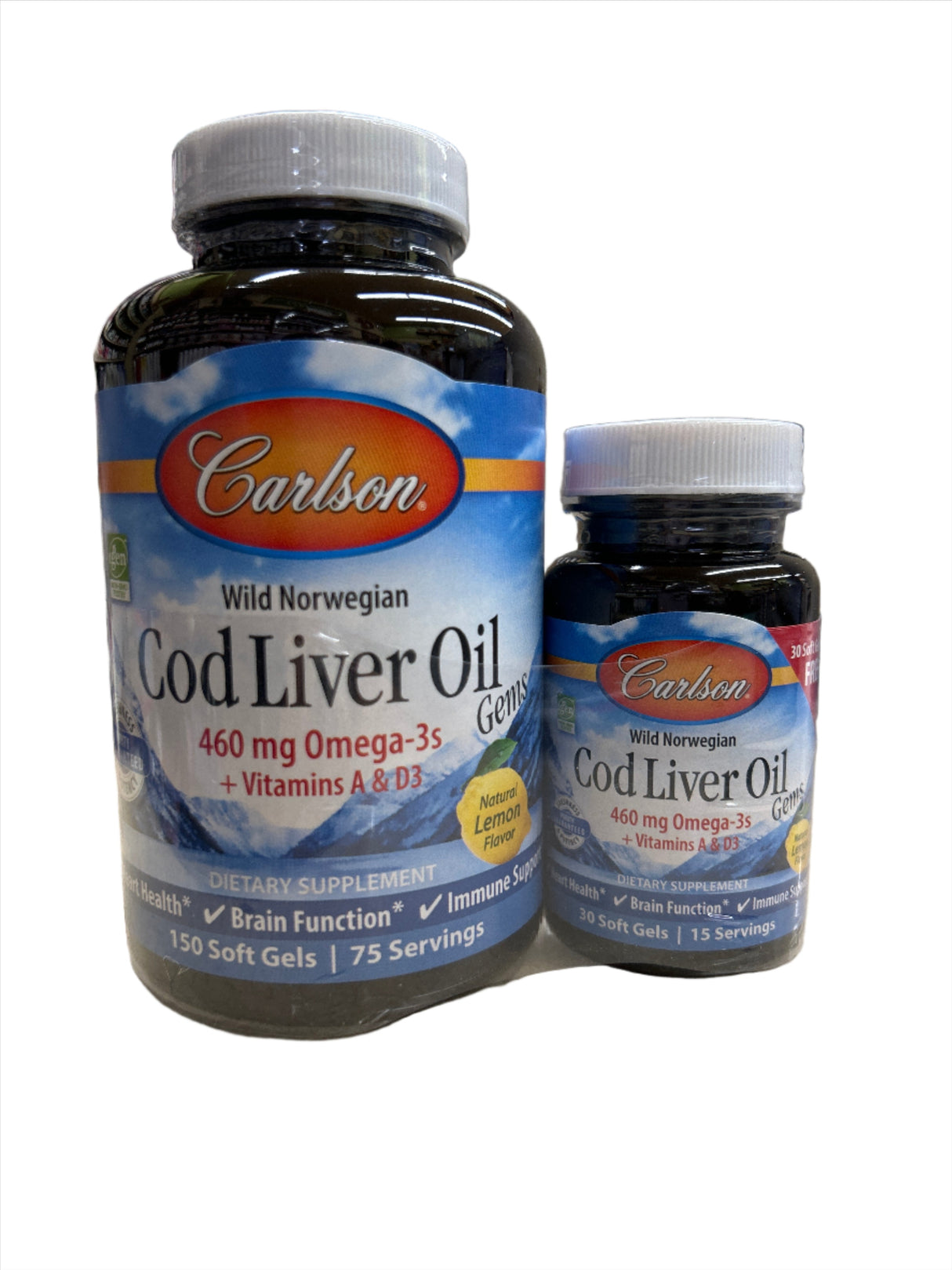 Wild Norwegian Cod Liver Oil Gems Lemon Flavor 460 mg 150+30 Soft Gels
