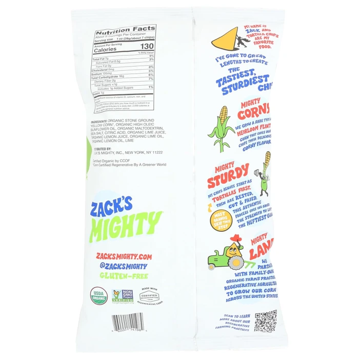 Zacks Mighty Organic Lime Tortilla Chips, 9oz.